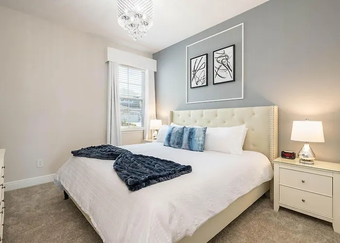 Située à proximité d'attractions familiales comme le parc d'aventures Orlando Tree Trek, la villa se trouve dans le quartier Celebration. Si vous souhaitez visiter les environs, rendez-vous à ChampionsGate Golf Club, à 10 minutes en voiture de cette villa de 4 chambres. Vous pourrez également visiter le Ship Wreck Island Water Park, qui est à 4 km.